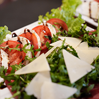 Büffelmozzarella, Tomate, Basilikum & feiner Balsamico.