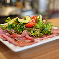 Rohes Rindfleisch, Parmesan, Zitrone & Rucola – hauchdünn & frisch.