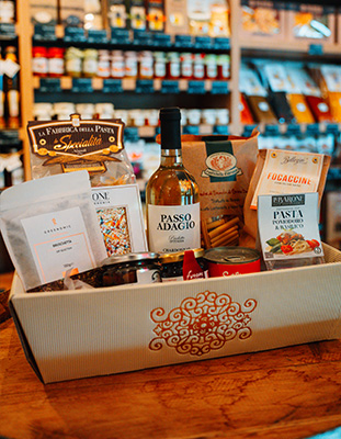 Sie suchen das perfekte Geschenk? Wir stellen Ihnen individuelle Geschenkkörbe mit italienischen Spezialitäten zusammen.